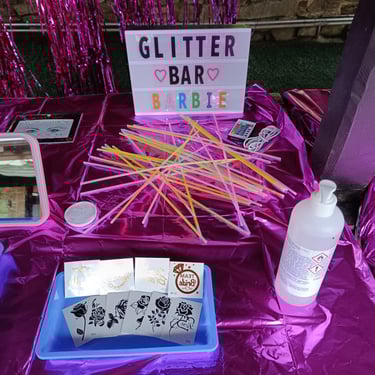 Durante el momento de la fiesta disponían de una mesa entera preparada como Glitter Bar con barras de luz y toda la brillantina, tatus y piedrecitas que triunfó.